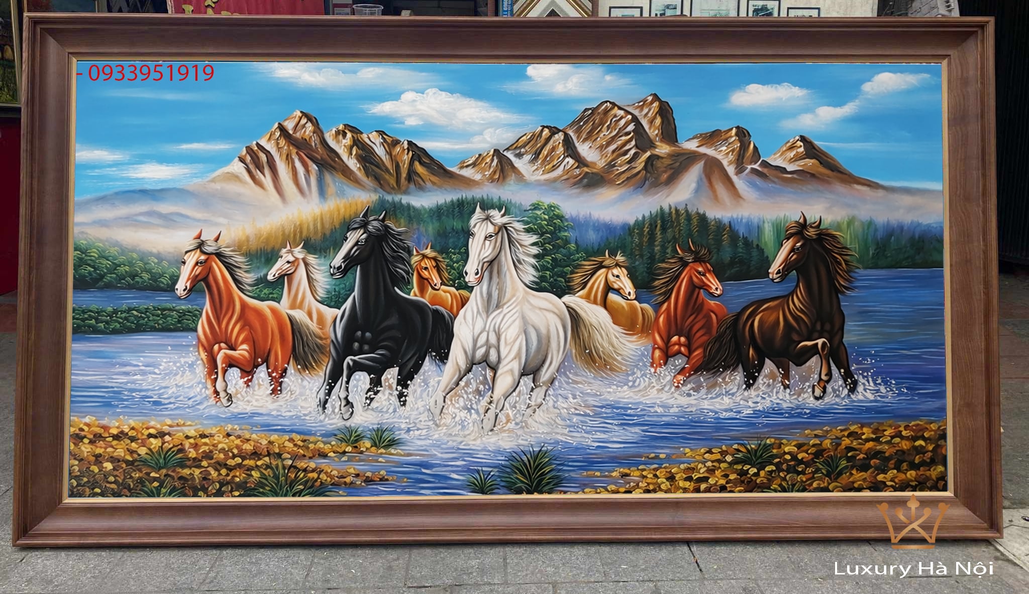 Tổng thể bức tranh hài hòa giữa động và tĩnh, giữa sức mạnh của đàn ngựa và sự uy nghi, bền vững của núi rừng, gửi gắm thông điệp phong thủy tốt đẹp: thành công trở về, công danh hanh thông, sự nghiệp phát triển và tài lộc dồi dào. Bức tranh rất phù hợp treo trong phòng khách, phòng làm việc hoặc làm quà tặng khai trương, chúc mừng.